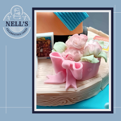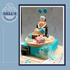 It was beyond a privilege to design and make this cake for a wonderful woman as she celebrated her 90th birthday. I was asked to include a figure of the lady herself on top of the cake, surrounded by her favourite interests - knitting, word searches, jigsaw puzzles, carnations and the TV show Heartbeat. Just make sure you scroll through to the last photo which shows Nan with her cake! Happy birthday, Nan xx