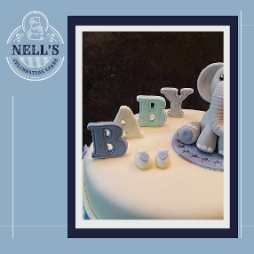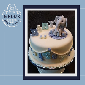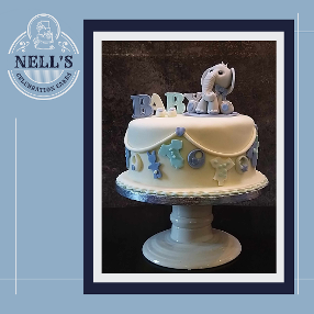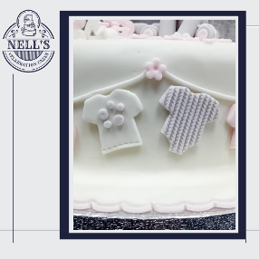 Baby showers are becoming very popular and here are two versions of the same cake - one for a boy and one for a girl! Inside one there were four layers of light vanilla sponge with creamy vanilla buttercream filling and the second cake was a tall luxury chocolate biscuit cake. The cakes were then covered with smooth fondant and decorated with handmade fondant decorations.