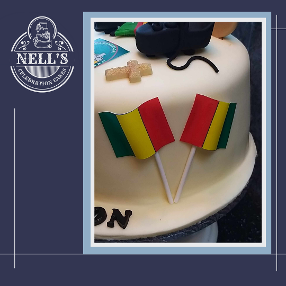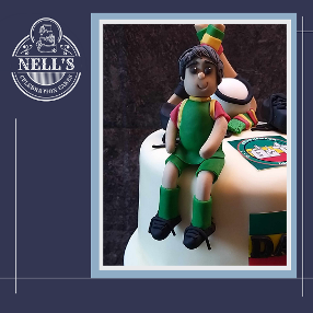 This cake was designed especially for a young man celebrating his confirmation. He is a big hurling fan, playing for his local club so the cake features hurls, sliotar, the club flags and the young man himself, dressed in his club strip! Everything was modelled by hand and was entirely edible.