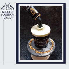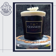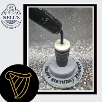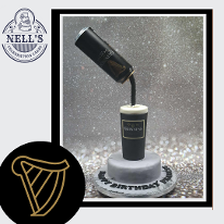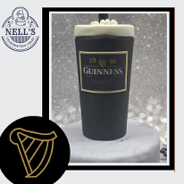 Anti-gravity cakes are so much fun both to make and receive and this Guinness cake is no exception. The first is chocolate biscuit cake is shaped into a pint glass shape, placed on a small biscuit cake round and a real Guinness can is suspended above it to give the illusion of it being poured. A personalised label helps to make the cake special for the lucky recipient. The second one was a carved cake made from 5 layers of 4" and 5" chocolate sponge, sandwiched with chocolate fudge buttercream before being carved into the shape of a pint glass. Decoration is simple - black and white fondant but with an anti-gravity can pouring the black stuff into the glass.