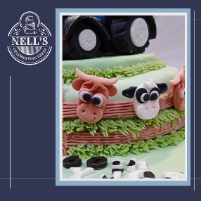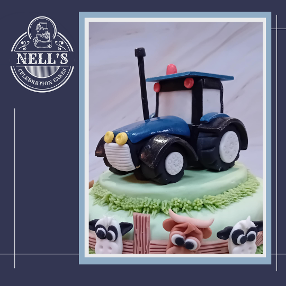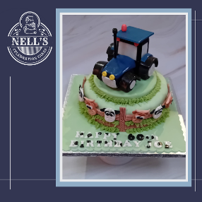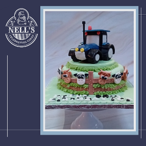 This cake was designed and made for farmer, Joe, who celebrated his 60th birthday recently. Inside there are 4 layers of vanilla sponge with creamy vanilla buttercream filling. Joe keeps limousine cattle, black whiteheads and Belgian blues but the Belgian blues were just too scary to put on a cake - moo!