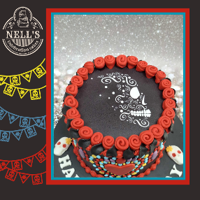 When a very special person celebrates their birthday, a very special cake is required. This cake was for Maria who is not only the very talented person behind the beautiful frames for my photos but is my beautiful daughter-in-law. She loves the Dia de los Muertos theme so the choice of design for her cake was an easy one. Happy birthday, Maria xxx