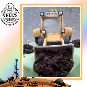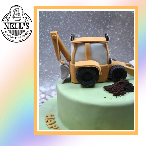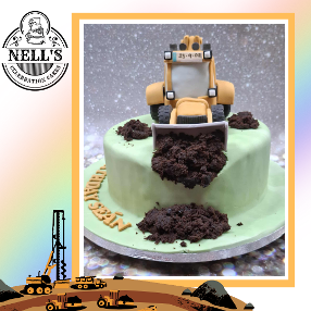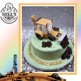 This cake was designed for a young man whose hobby is digging! His mum ordered the cake and sent on photos of the digger in question so I could make the model in the same style. Of course the digger had to be put to work digging holes in the cake. Happy birthday, Seán