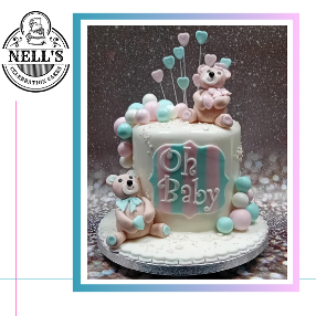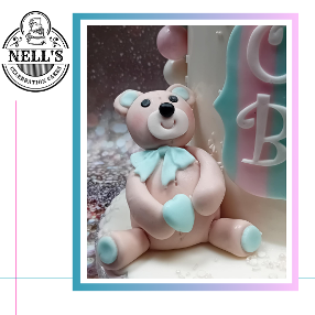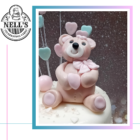 This was another first for me - a gender reveal cake. 5 layers of vanilla sponge with jam and buttercream filling that can be coloured either pink or blue for the big reveal. This cake features teddy bears, hearts and coloured spheres in pink, blue and white. Congratulations to the expectant family!