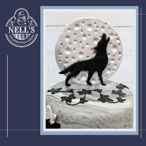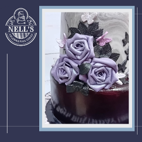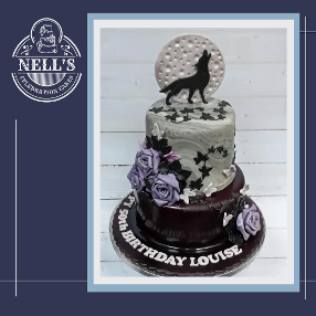 I just adore this cake and its gothic feel. I was asked to design a cake with a wolf, flowers and butterflies and this is the result. Everything is handmade. Inside there us an " chocolate biscuit cake and a tall " red velvet sponge filled with creamy vanilla buttercream.