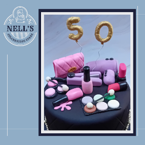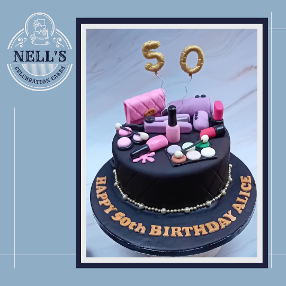 was asked to incorporate a few different things on to Alice's cake - hairdressing, make up and handbags on a black and gold theme. This is the result! All models were made by hand and placed on an 8" chocolate biscuit cake - of course, I added some birthday balloons too! Happy birthday, Alice