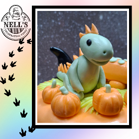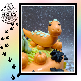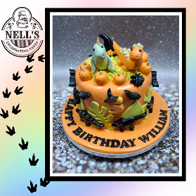 Halloween in February - why not??? This cake was design for William who loves dinosaurs, the colour orange and all things Halloween and this is the result. Inside there is a 4layer 6" chocolate sponge with a rich chocolate filling. Happy birthday, William!