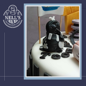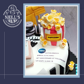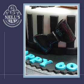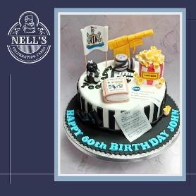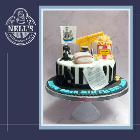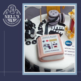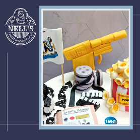 I was asked to make a cake for the sixtieth birthday of a man who is a self-proclaimed James Bond nerd, a Newcastle United fan and general film buff! This is the result. The cake itself is 8" of gluten free chocolate biscuit cake. The decorations include the golden gun, a magpie, popcorn, film reels and special VIP tickets to see a 60th anniversary showing of Goldfinger!