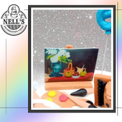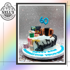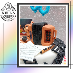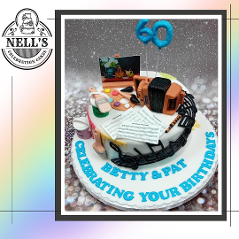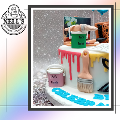 I just love making fondant models to go on a cake and using edible images to bring them to life. This cake celebrates a couple who turned 60 and who have different artistic talents - painting and traditional music. The cake features Betty's accordion, tin whistle plus some of her favourite tunes and Pat's paints, brushes and one of his very own pieces on the easel. As Pat is also a painter and decorator by trade, there are also a couple of tins of paint and brushes - oh, and a few drips here and there!