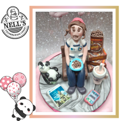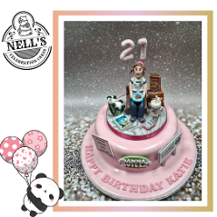 When mum Angelina contacted me for a cake for her daughter's 21st birthday, she wanted one of my signature cakes which truly capture the life of the person receiving the cake. Angelina described Katie's life and it made a great cake. You can see student nurse, Katie, sitting eating her favourite cereal, Weetos, with her water flask, a stack of Weetos boxes, her mobile phone and Panda who travels to Dublin with Katie each week. Inside there is a 3 layer 8" red velvet sponge with vanilla buttercream filling. The scene on top is on its own board so it can be removed and kept as a memento of the celebrations. Happy birthday, Katie!