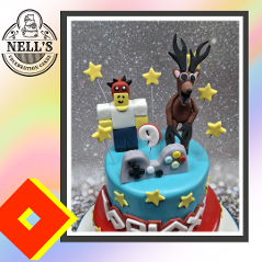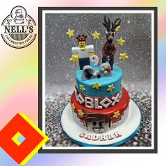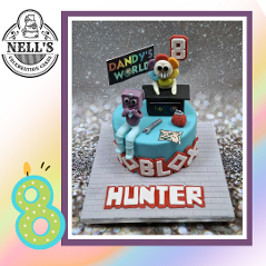 Roblox is certainly the hot theme for cakes at the moment and here are some I've made. The first was for Hunter, who turned 8 recently. Hunter's favourite Roblox game is Dandy's World so I needed to do some serious research to find out all about it. The cake features Boxten, a living music box, and the main character, Dandy, who runs the shop in the game where gadgets, like the ones on the cake, can be bought. Inside there is a 6" chocolate biscuit cake. When Hunter saw the cake, he said "How did you know this is my favourite game?" The second cake was for a serious gamer! The two tier cake features iconic Roblox details plus figures from 99 Nights in the Forest - very scary indeed! The final cakes are the same design but different sizes and were of a more general theme.