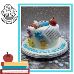 As a retired teacher, I was just delighted to make this cake to mark the end of a very successful teaching practice by student teacher, Ms. Gatley. The cake shows just a few of the many resources used in a Junior Infant classroom plus, of course, a school report showing Ms. Gately's many talents. Congratulations and best wishes for your future career in teaching.